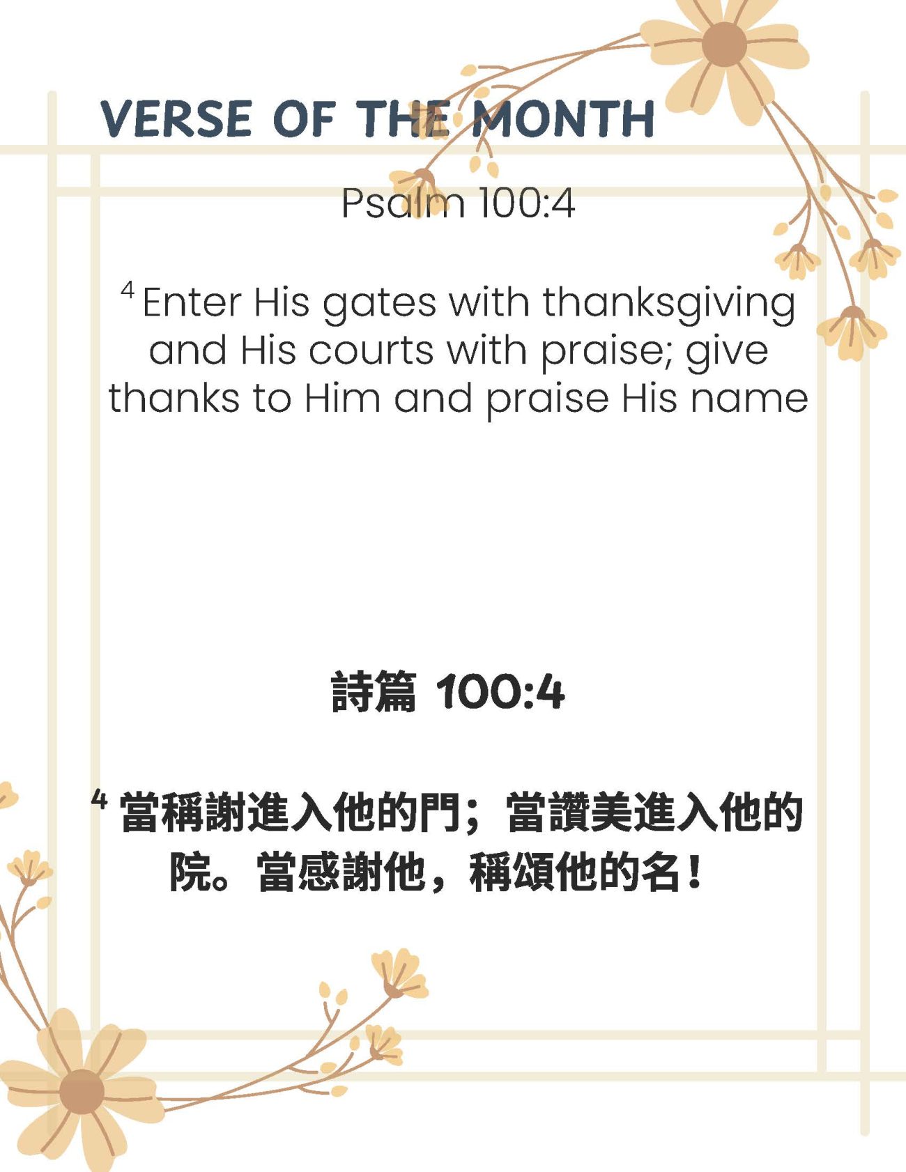 Enter his gates with thanksgiving and his courts with praise; give thanks to him and praise … November 2025 Verse of the MonthRead more